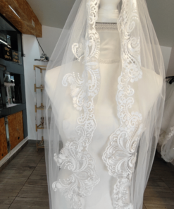 Velo en color ivory de tul con orilla de cristales y perlitas