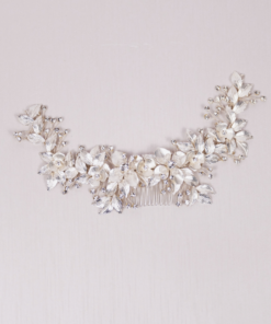 Guía flexible en color blanco con flores de metal.