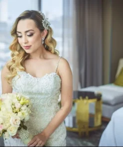 Tocado de pinza en color plata con cristal tipo swarovski