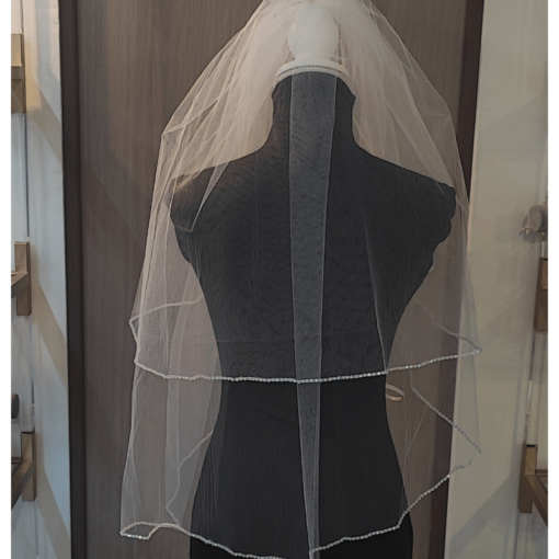 Velo corto de doble capa en color ivory con orilla de cristales