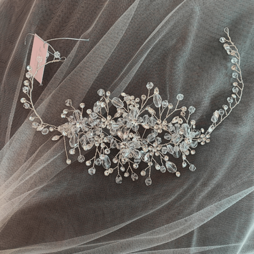 Guía flexible en color plata con cristal tipo Swarovski y cristal cortado. Ideal si quieres un tocado estilo halo que te abarque toda la cabeza
