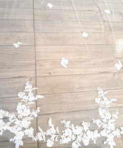 mantilla en color ivory de tul  frances con encaje solo en la cauda